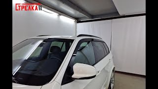 Дефлекторы окон на BMW X5 E70 2006-2013 приклеиваются на рамки дверей с помощью двухстороннего скотча 3M, который уже нанесен с задней стороны каждого ветровика.