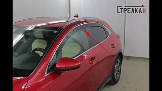 Дефлекторы окон на KIA Xceed 2019- приклеиваются на рамки дверей с помощью двухстороннего скотча 3M, который уже нанесен с задней стороны каждого ветровика.