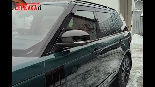 Дефлекторы окон на Range Rover 4 2012-2017 приклеиваются на рамки дверей с помощью двухстороннего скотча 3M, который уже нанесен с задней стороны каждого ветровика.
